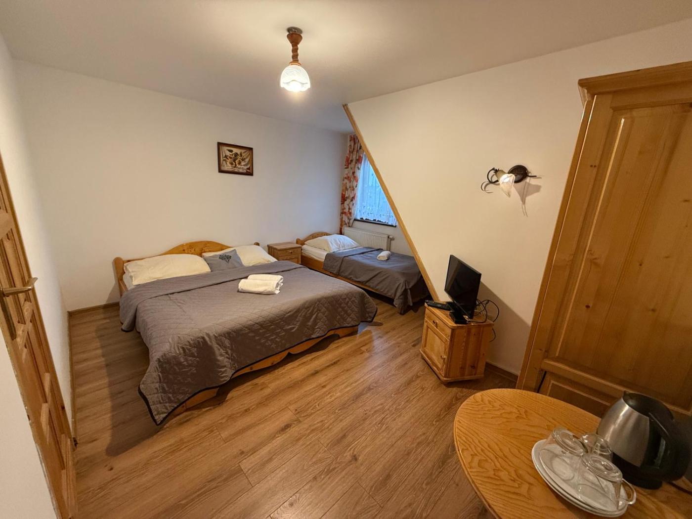 Pokój rodzinny z widokiem na góry. Providing free toiletries, this family room includes a private bathroom with a shower and a hairdryer. This family room features a tea and coffee maker, heating and a flat-screen TV. The unit offers 3 beds. Rodzinny - 4 osobowy. Powierzchnia pokoju ok.: 38 mkw. ;