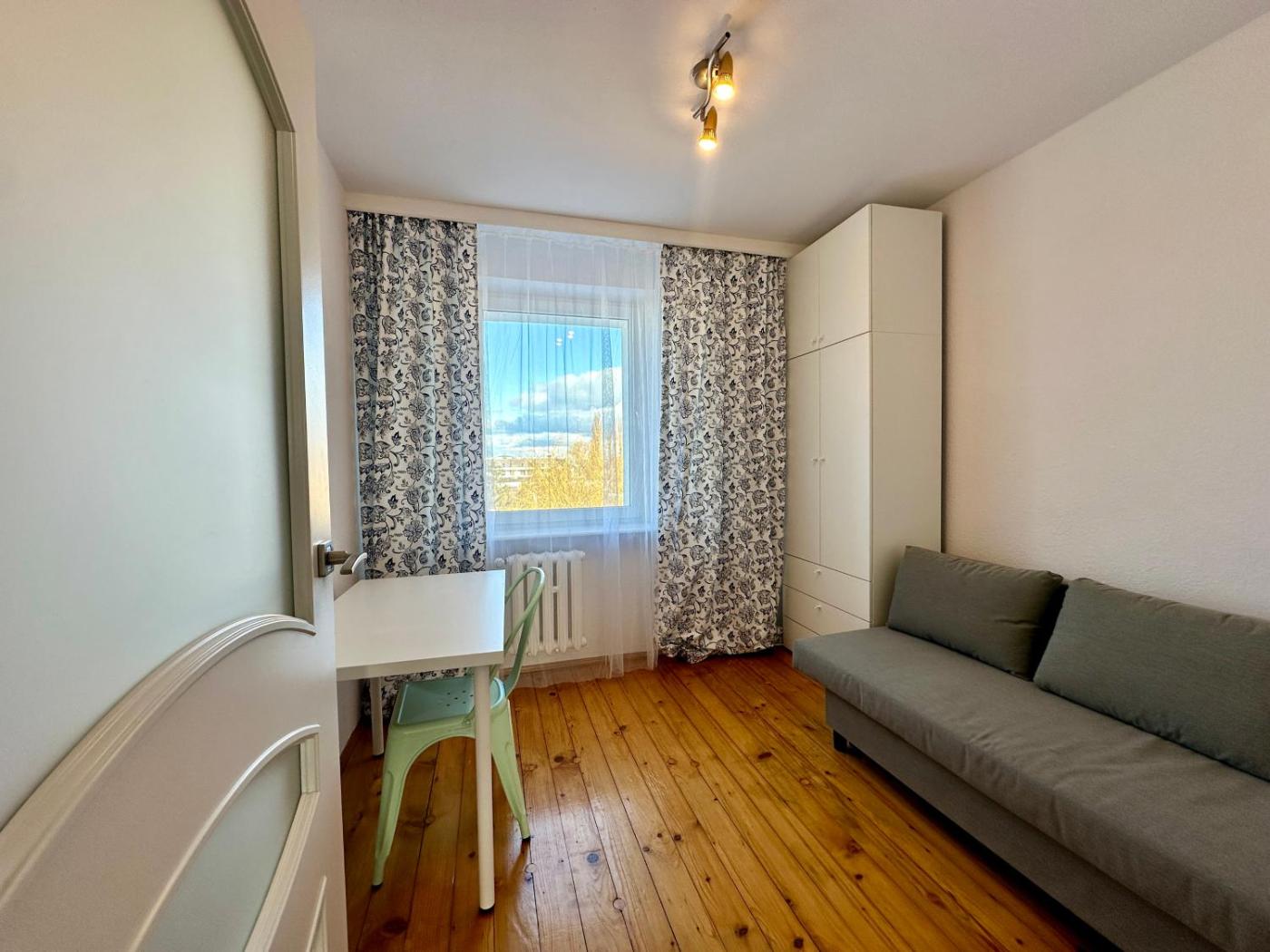 Apartament z 4 sypialniami. This spacious apartment comes with 4 bedrooms, kitchen and 1 bathroom with a shower. Guests can make meals in the kitchen that features a stovetop, a refrigerator, kitchenware and an oven. Boasting a balcony, this apartment also features a washing machine, a dining area and a flat-screen TV. The unit has 4 beds. Apartament - 8 osobowy. Powierzchnia pokoju ok.: 80 mkw.