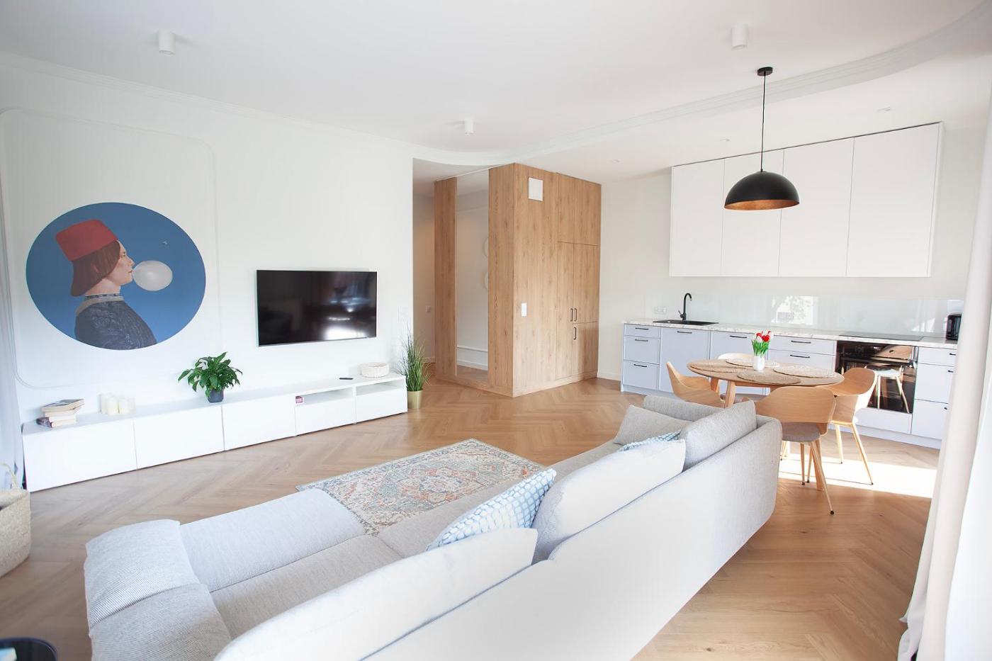 Apartament z 2 sypialniami. This spacious apartment includes 1 living room, 2 separate bedrooms and 1 bathroom with a bath and a shower. Guests can make meals in the kitchenette that has a stovetop, a refrigerator, a dishwasher and kitchenware. Boasting a balcony with a quiet street view, this apartment also offers a coffee machine and a flat-screen TV. The unit has 2 beds. Apartament - 4 osobowy. Powierzchnia pokoju ok.: 80 mkw.