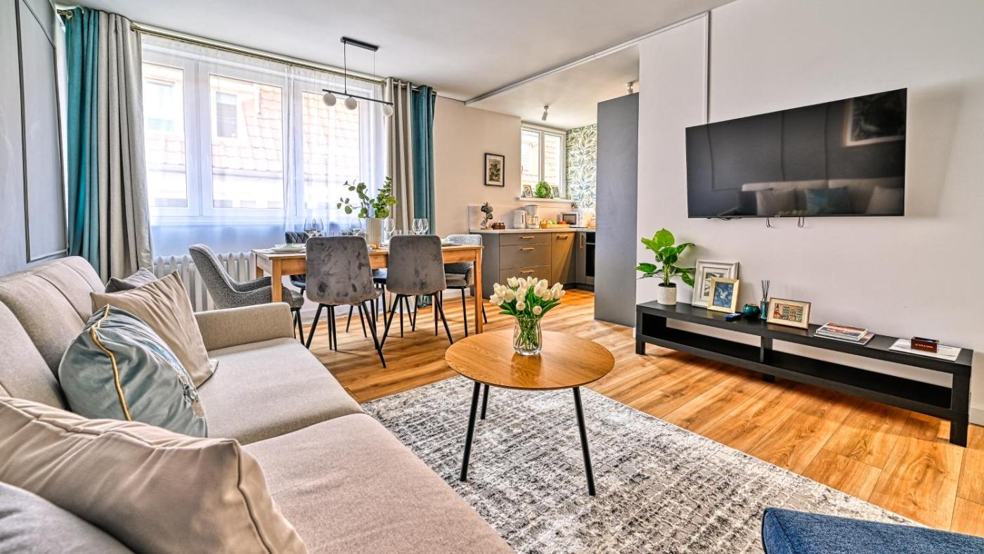 Apartament z 2 sypialniami. This apartment comprises 1 living room, 2 separate bedrooms and 1 bathroom with a shower and a hairdryer. In the well-equipped kitchenette, guests will find a stovetop, a refrigerator, a dishwasher and kitchenware. The apartment provides a washing machine, a coffee machine, a seating area, a flat-screen TV, as well as city views. The unit offers 5 beds. Apartament - 6 osobowy. Powierzchnia pokoju ok.: 54 mkw.
