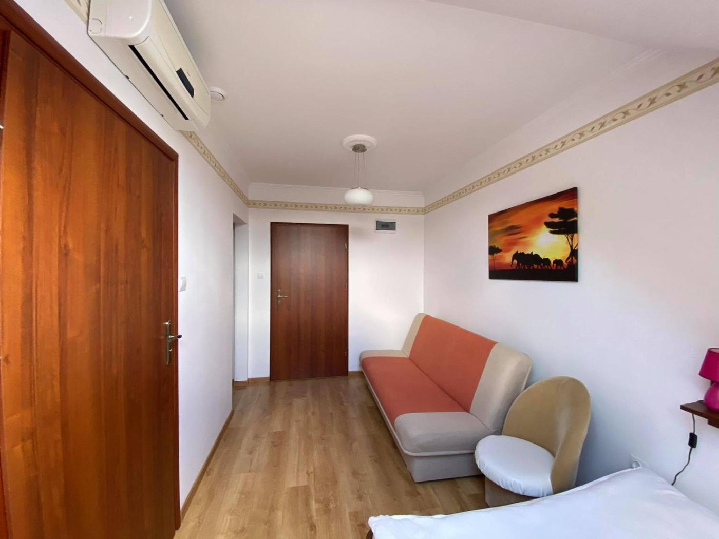 Pokój dwuosobowy. The double room provides air conditioning, a wardrobe, as well as a private bathroom featuring a shower and a hairdryer. This double room features a dressing room, heating and a flat-screen TV. The unit offers 1 bed. Pokój Dwuosobowy - 2 osobowy. Powierzchnia pokoju ok.: 14 mkw. ;