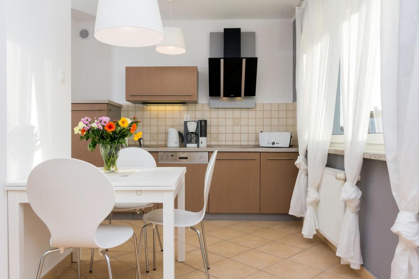 Apartament z 1 sypialnią. Jest to apartament z sypialnią, łazienką i kuchnią. W kuchni można przygotowywać posiłki i przechowywać żywność. Pozostałe udogodnienia obejmują ogrzewanie i balkon francuski. Do dyspozycji gości są 2 łóżka. Apartament - 4 osobowy. Powierzchnia pokoju ok.: 45 mkw. ;