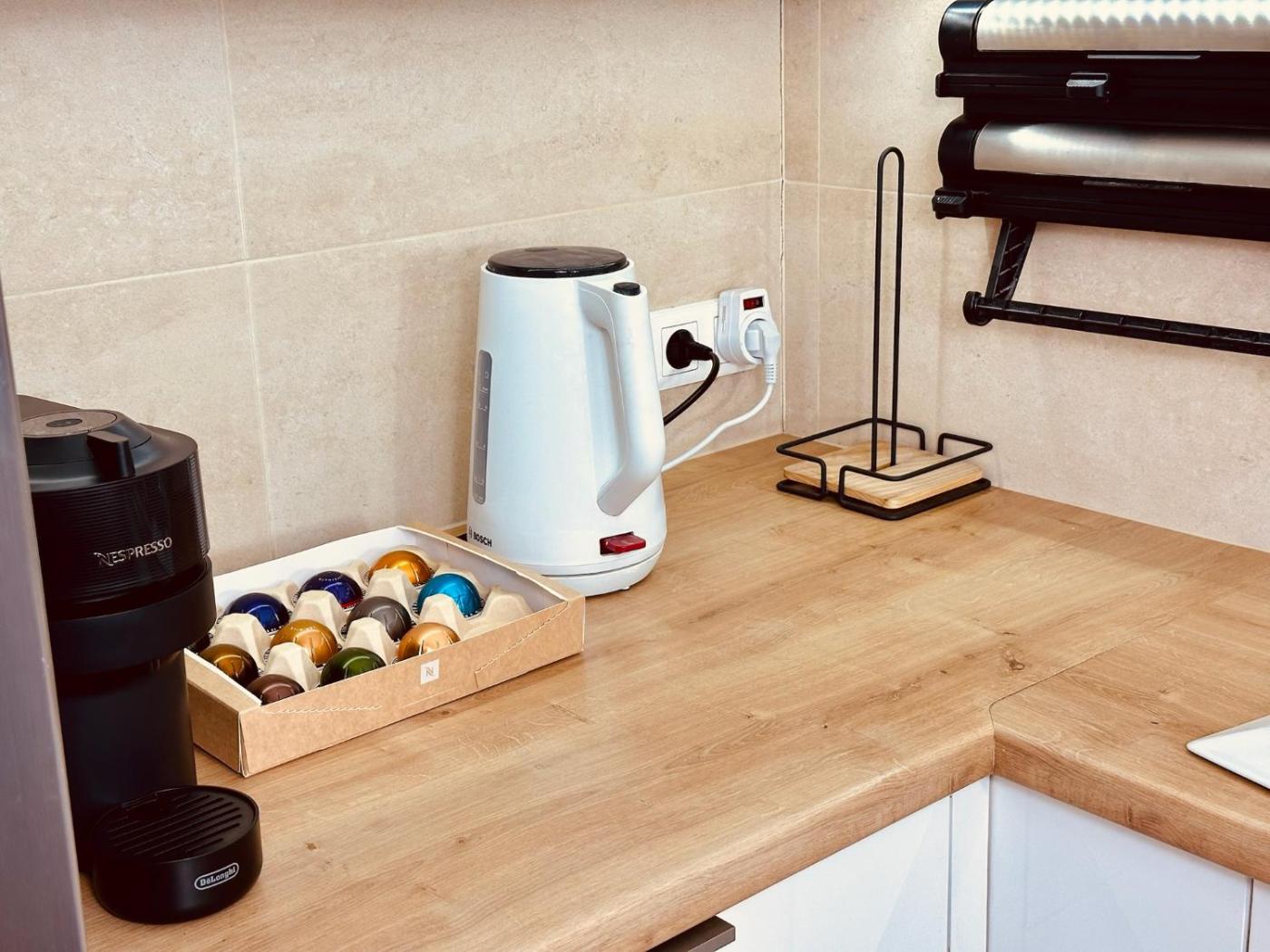 Oferta apartamentu obejmuje sypialnię (1), salon, kuchnię z pełnym wyposażeniem, w tym lodówką i ekspresem do kawy, a także łazienkę (1) z bidetem oraz prysznicem. W apartamencie zapewniono ręczniki i pościel.
