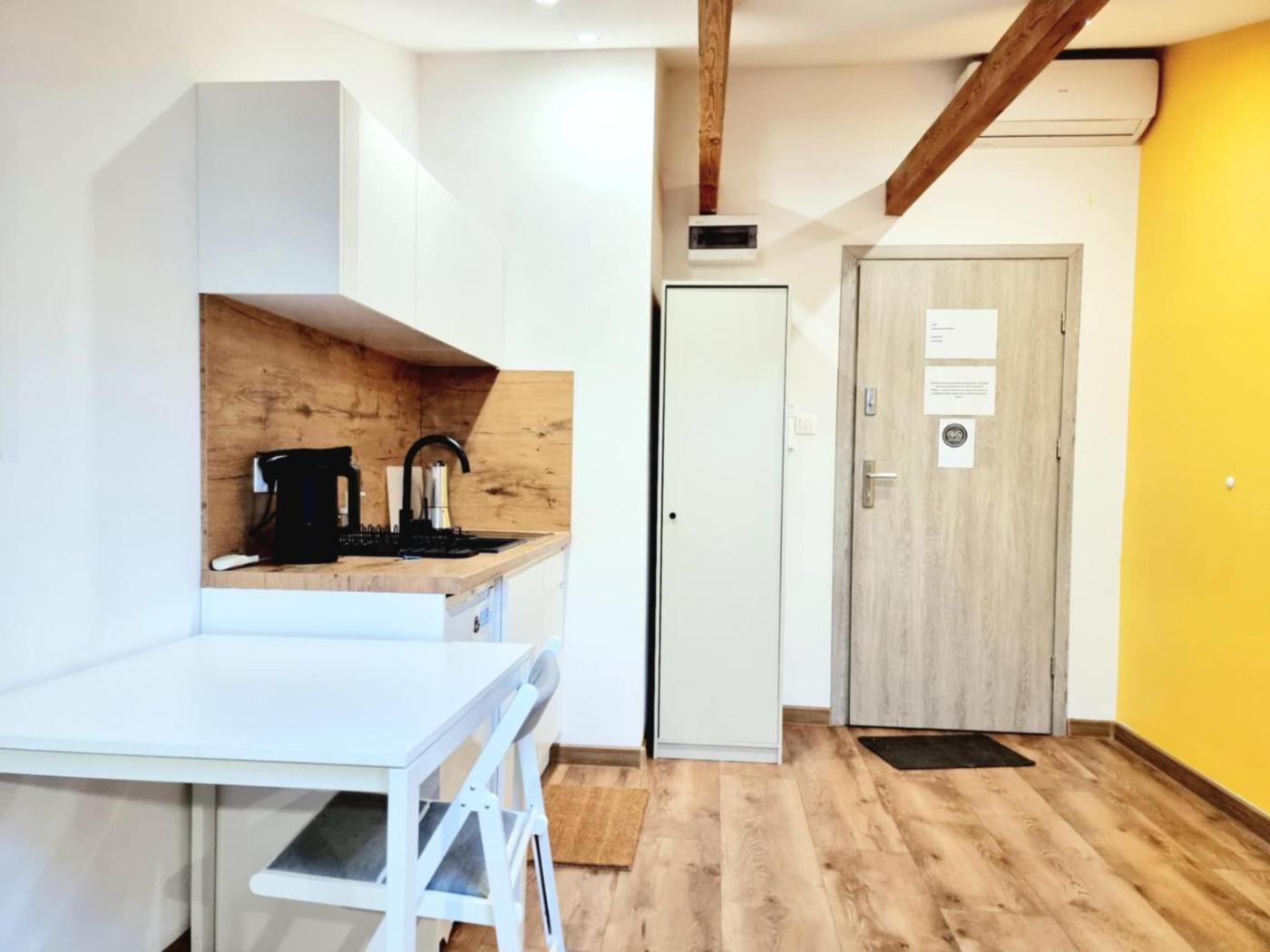 Apartament typu studio. This apartment offers a hot tub. The air-conditioned apartment features 1 bedroom, 1 bathroom and a kitchenette. The apartments kitchenette, which has kitchenware and a microwave, is available for cooking and storing food. The apartment provides a washing machine, a tea and coffee maker, a wardrobe, a sofa and a flat-screen TV with streaming services. The unit offers 2 beds. Apartament - 3 osobowy. Powierzchnia pokoju ok.: 17 mkw. ;