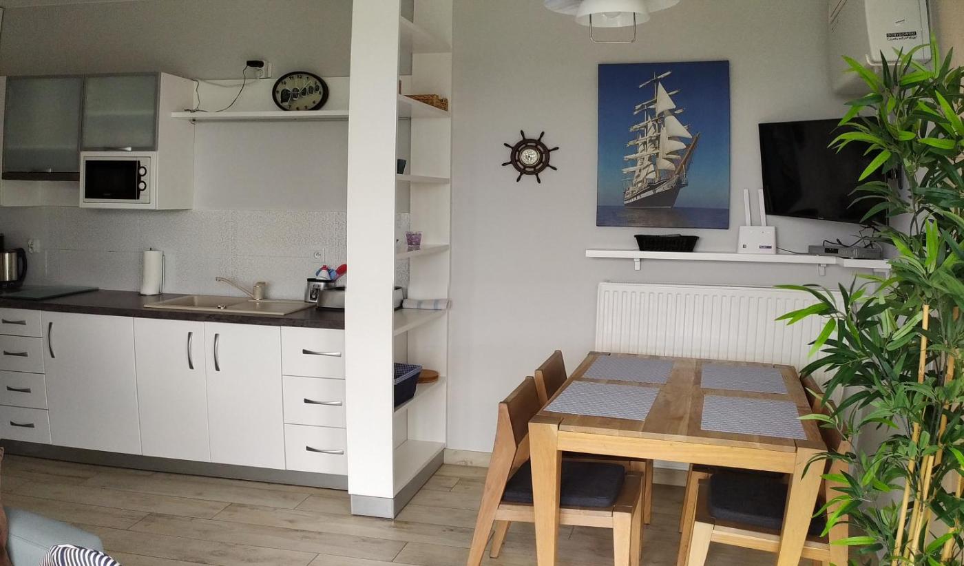 Apartament typu Deluxe. Boasting a private entrance, this air-conditioned apartment features 1 living room, 1 separate bedroom and 1 bathroom with a walk-in shower and a hairdryer. In the kitchen, guests will find a stovetop, a refrigerator, a dishwasher and kitchenware. This apartment has a washing machine, flat-screen TV with cable channels, sea views, as well as winechampagne for guests. The unit has 2 beds. Apartament - 4 osobowy. Powierzchnia pokoju ok.: 40 mkw.