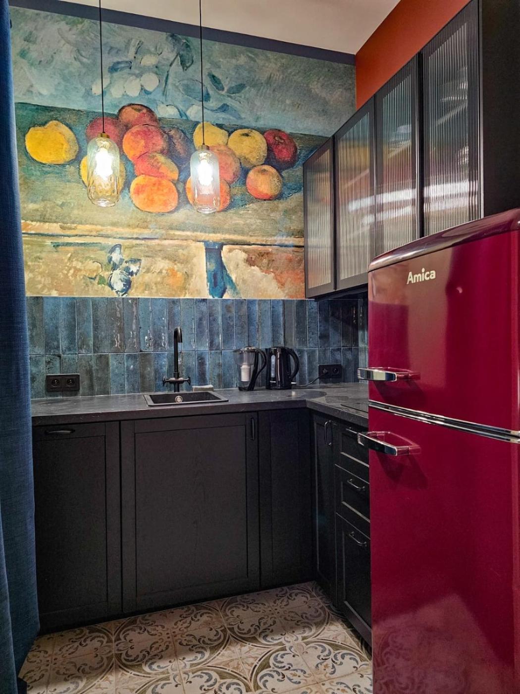 W apartamencie do dyspozycji gości przygotowano sypialnię (1) oraz kuchnię. Wyposażenie obejmuje też telewizor z płaskim ekranem.