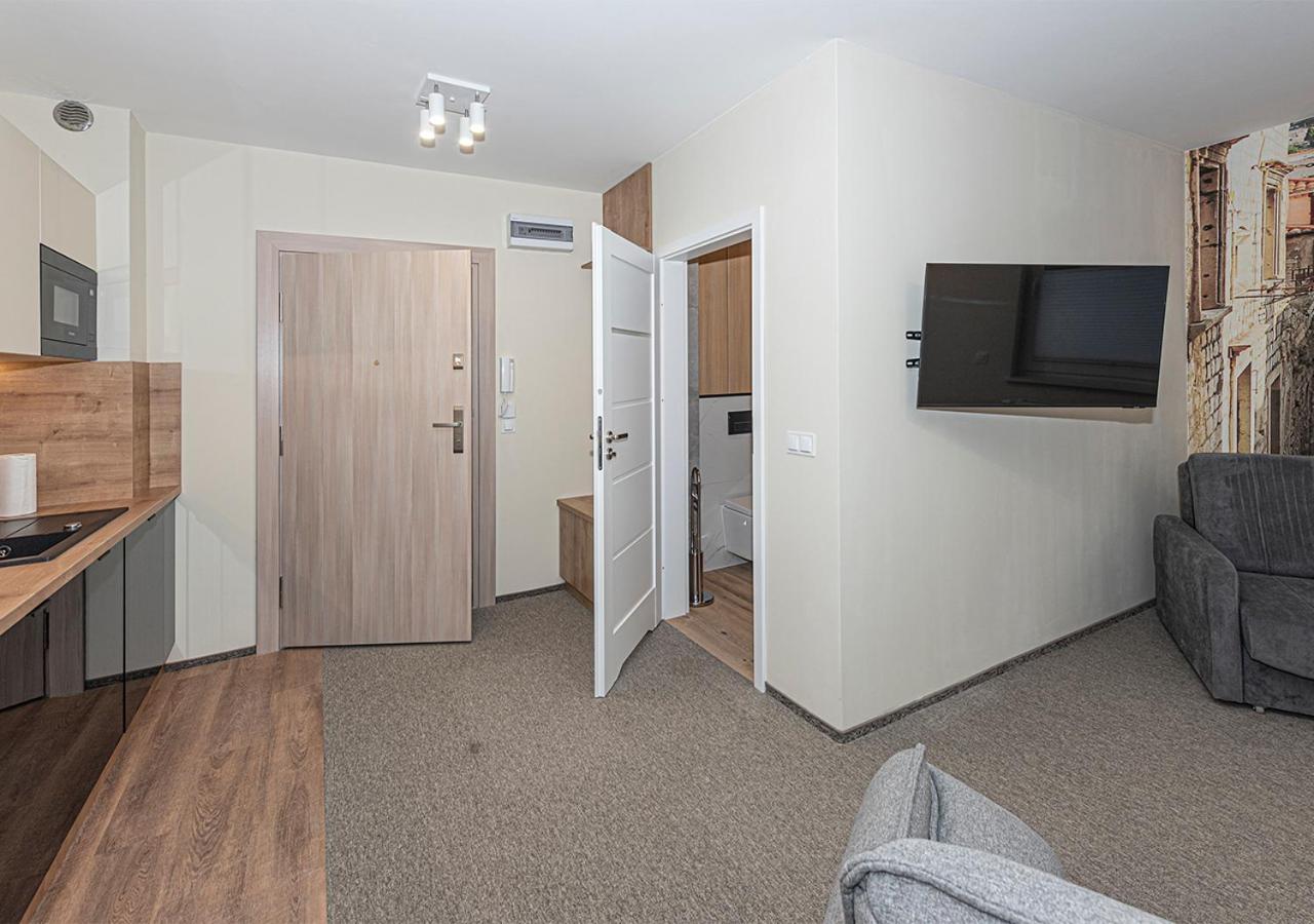 Apartament typu studio. The apartment features a dining area, a wardrobe, as well as a private bathroom featuring a shower and a hairdryer. The well-fitted kitchen features a stovetop, a refrigerator, a dishwasher and kitchenware. The apartment provides a private entrance, a tea and coffee maker, a seating area, a flat-screen TV with streaming services, as well as a quiet street view. The unit offers 2 beds. Apartament - 3 osobowy. Powierzchnia pokoju ok.: 26 mkw.