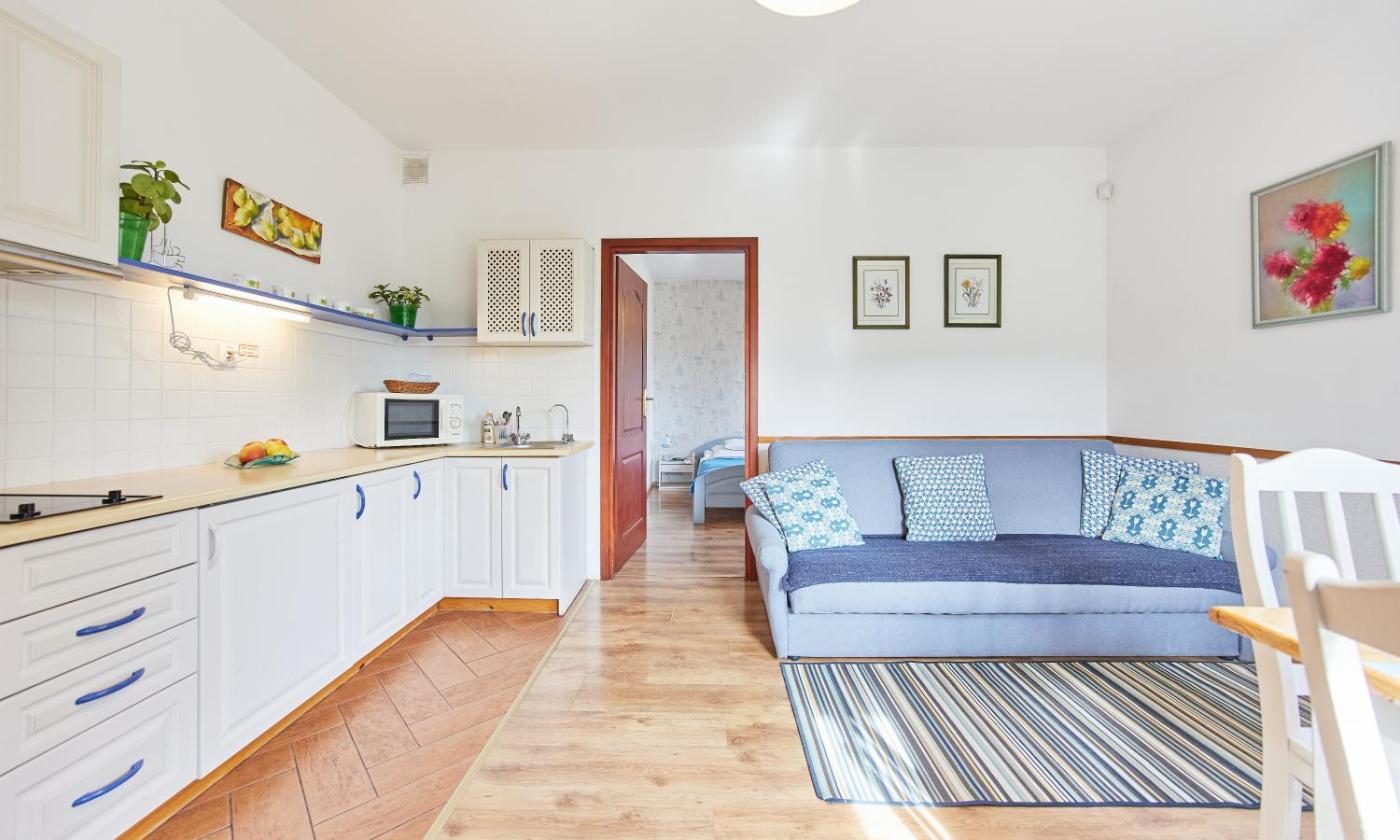 Apartament z widokiem na góry. This apartment is comprised of 1 living room, 1 separate bedroom and 1 bathroom with a shower and a hairdryer. Guests can make meals in the kitchenette that is fitted with a stovetop, a refrigerator, kitchenware and a microwave. The apartment offers a tea and coffee maker, a seating area, a dining area, a flat-screen TV with streaming services, as well as mountain views. The unit offers 2 beds. Apartament - 4 osobowy. Powierzchnia pokoju ok.: 35 mkw.