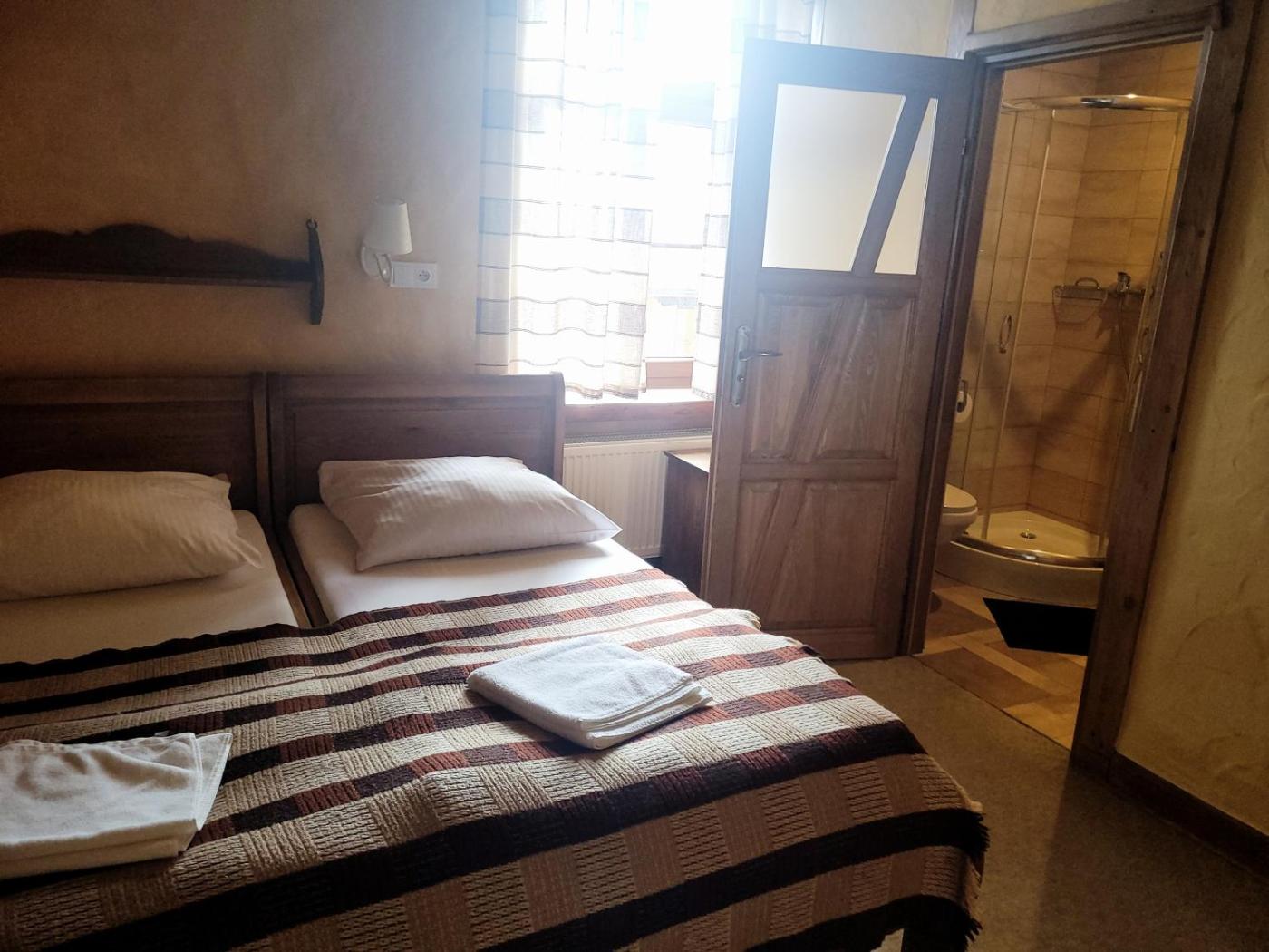 Pokój z 2 łóżkami pojedynczymi i prywatną łazienką. The twin room provides a wardrobe, a carpeted floor, as well as a private bathroom featuring a walk-in shower and a hairdryer. This twin room features heating and a flat-screen TV. The unit offers 2 beds. Pokój z 2 łóżkami pojedynczymi - 2 osobowy. Powierzchnia pokoju ok.: 21 mkw. ;