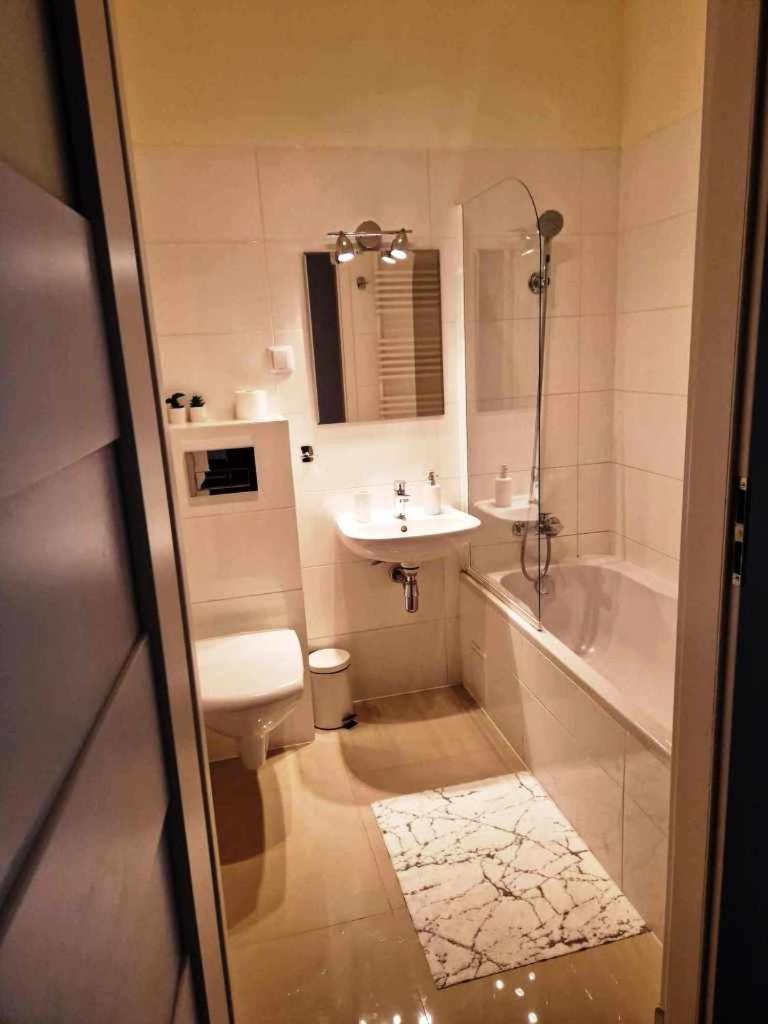 Apartament typu studio. Boasting a private entrance, this apartment comes with a kitchen, 1 bedroom and 1 bathroom with a bath and a shower. Guests can make meals in the kitchen that features a stovetop, a refrigerator, kitchenware and a microwave. The apartment features a flat-screen TV with cable channels, a washing machine, soundproof walls, a tea and coffee maker as well as a quiet street view. The unit has 2 beds. Apartament - 4 osobowy. Powierzchnia pokoju ok.: 31 mkw.