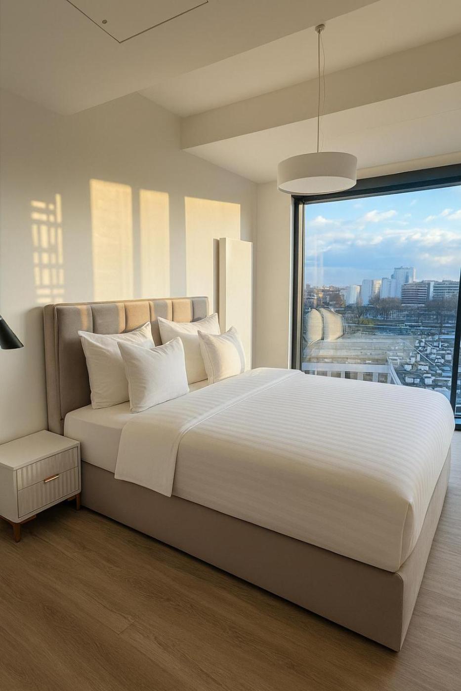 Apartament typu Deluxe z 1 sypialnią i widokiem na miasto. Ten apartament zapewnia salon, oddzielną sypialnię oraz łazienkę z prysznicem i bezpłatnymi przyborami toaletowymi. We w pełni wyposażonej kuchni przygotowano płytę kuchenną, lodówkę, i zmywarkę do naczyń i przybory kuchenne. Ten klimatyzowany apartament oferuje dźwiękoszczelne ściany, część wypoczynkową z telewizorem z płaskim ekranem, szafę, pralkę oraz zestaw do parzenia kawy i herbaty. W tej opcji zakwaterowania są dostępne 2 łóżka. Apartament - 4 osobowy. Powierzchnia pokoju ok.: 40 mkw. ;