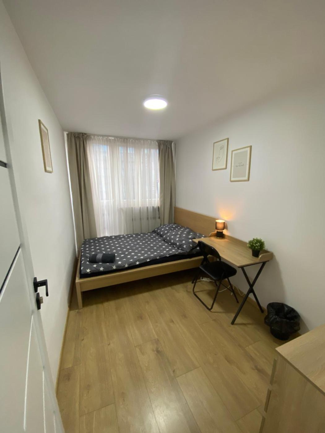 Pokój Dwuosobowy ze wspólną łazienką. The double room provides a washing machine, a wardrobe, as well as a shared bathroom featuring a bath and a shower. The double room features an electric kettle, heating and city views. The unit offers 1 bed. Pokój Dwuosobowy - 2 osobowy. Powierzchnia pokoju ok.: 10 mkw. ;